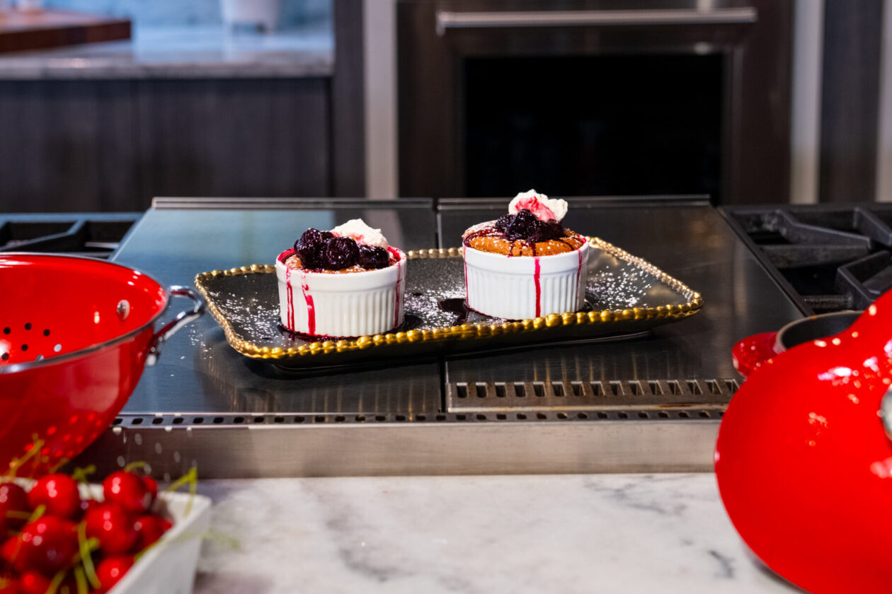 Dark Chocolate Soufflé with Cherry-Port Reduction